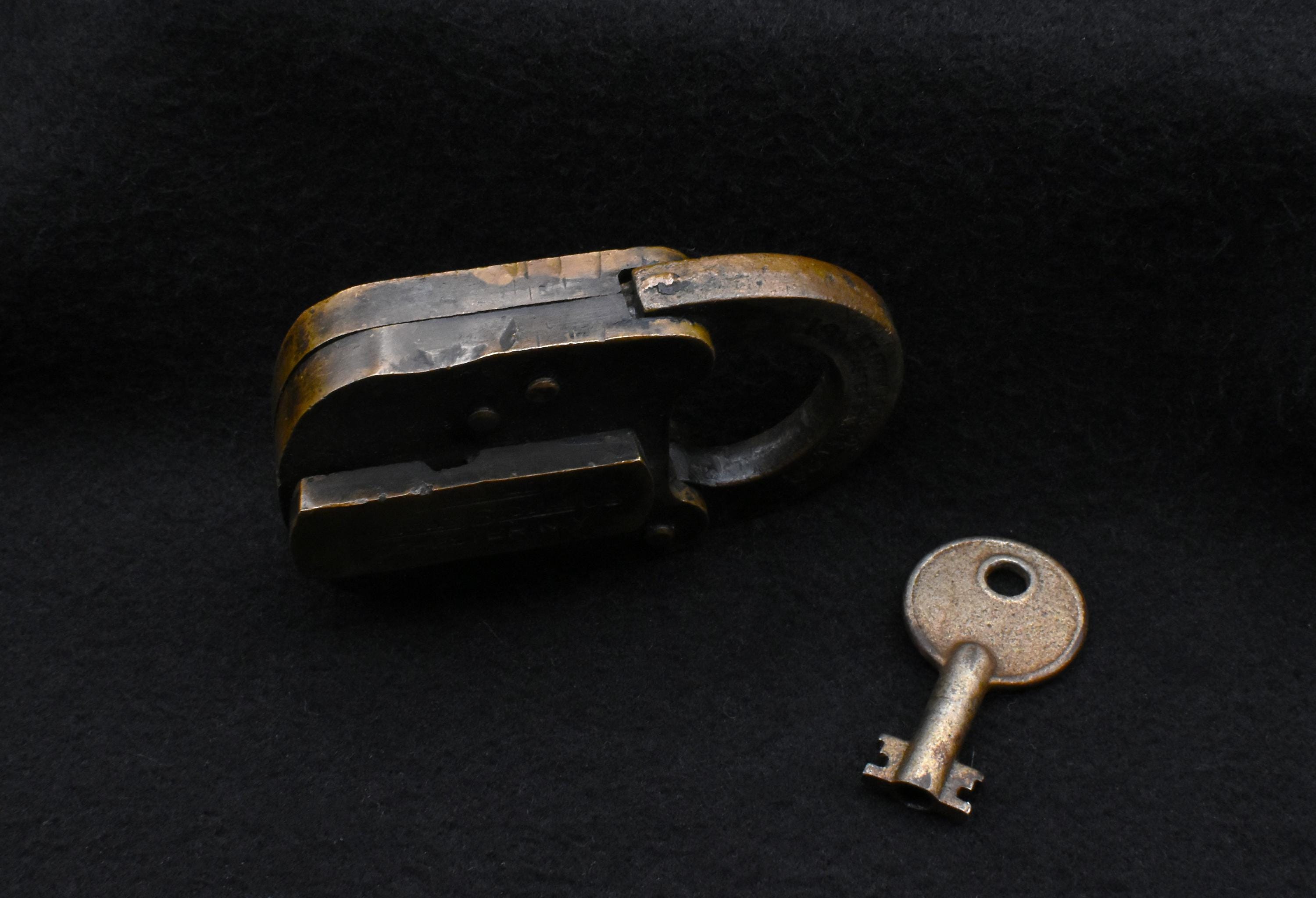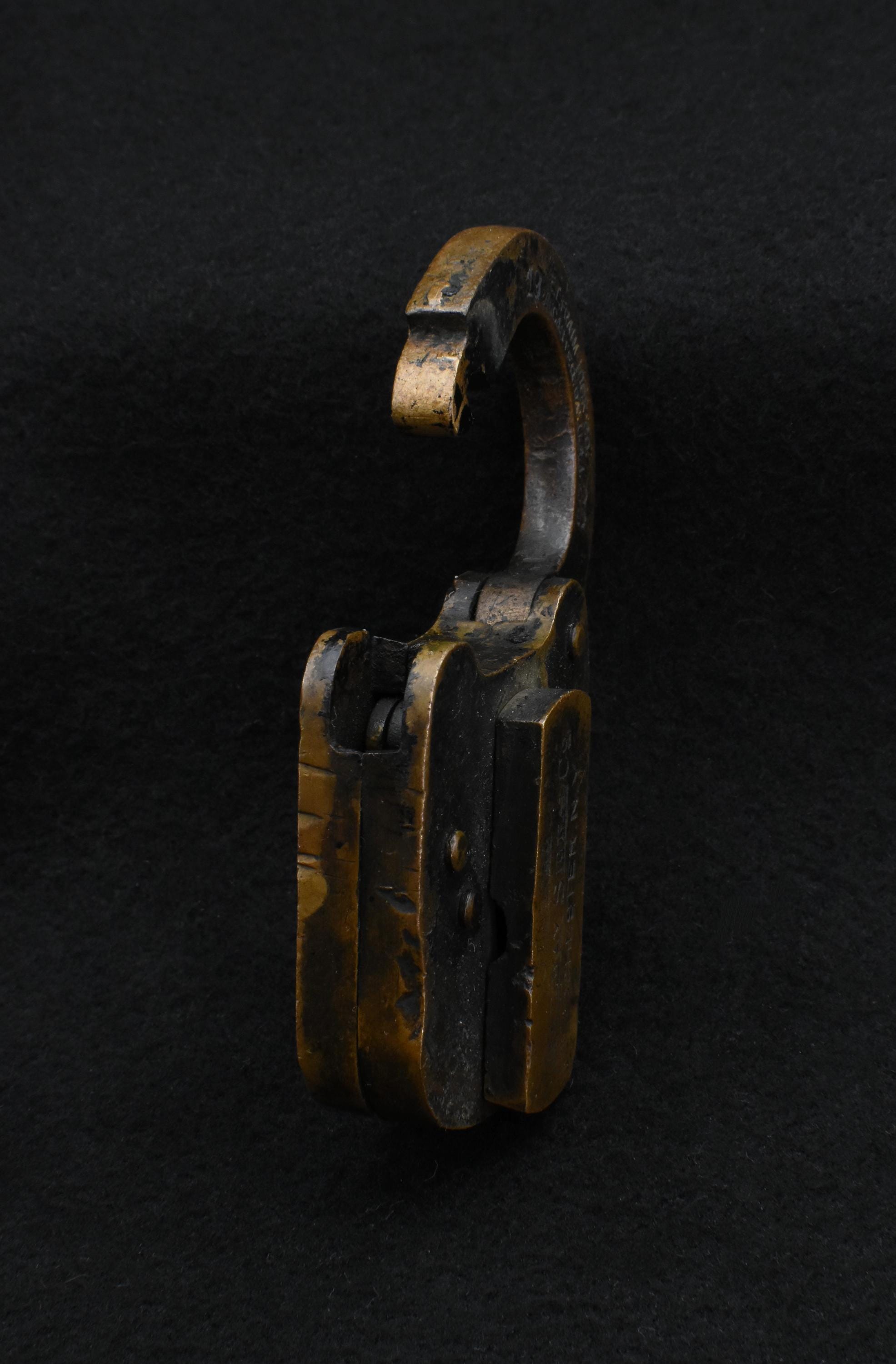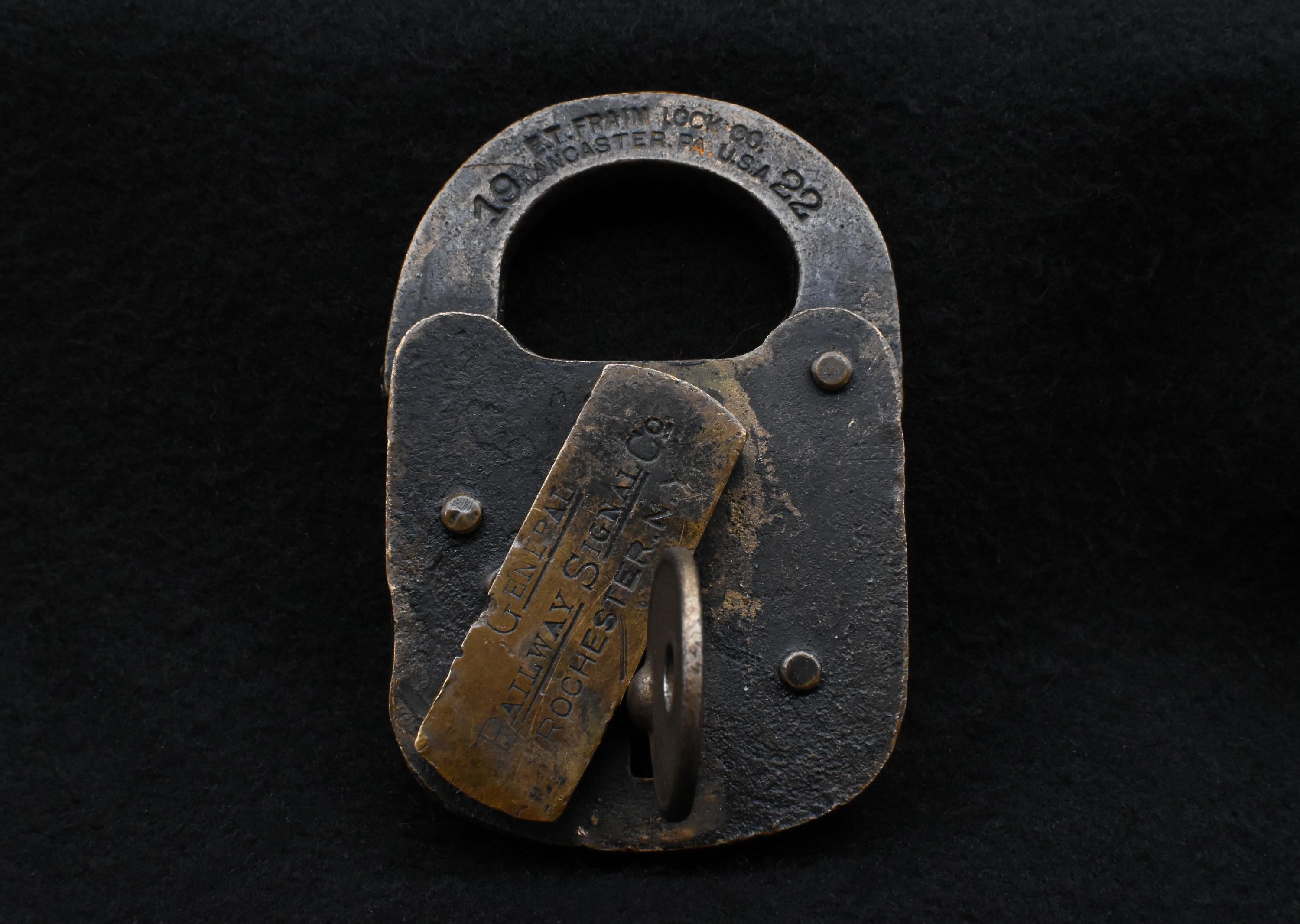 Our brass lock, although simple, is fairly rare and immensely important. Made in 1922, of brass to withstand the elements, it guarded GRS signals from unscrupulous individuals. It had only 3 keys made to ensure there were a limited number of keepers who could change the signals. It is in very good condition and shows over a century of history under that well-earned patina. The lock works, but is a tad finicky when it comes to unlocking (it could use a jiggle or two to pop open). Nonetheless, with original #3 key intact, it is a beautiful piece of American Railway history.