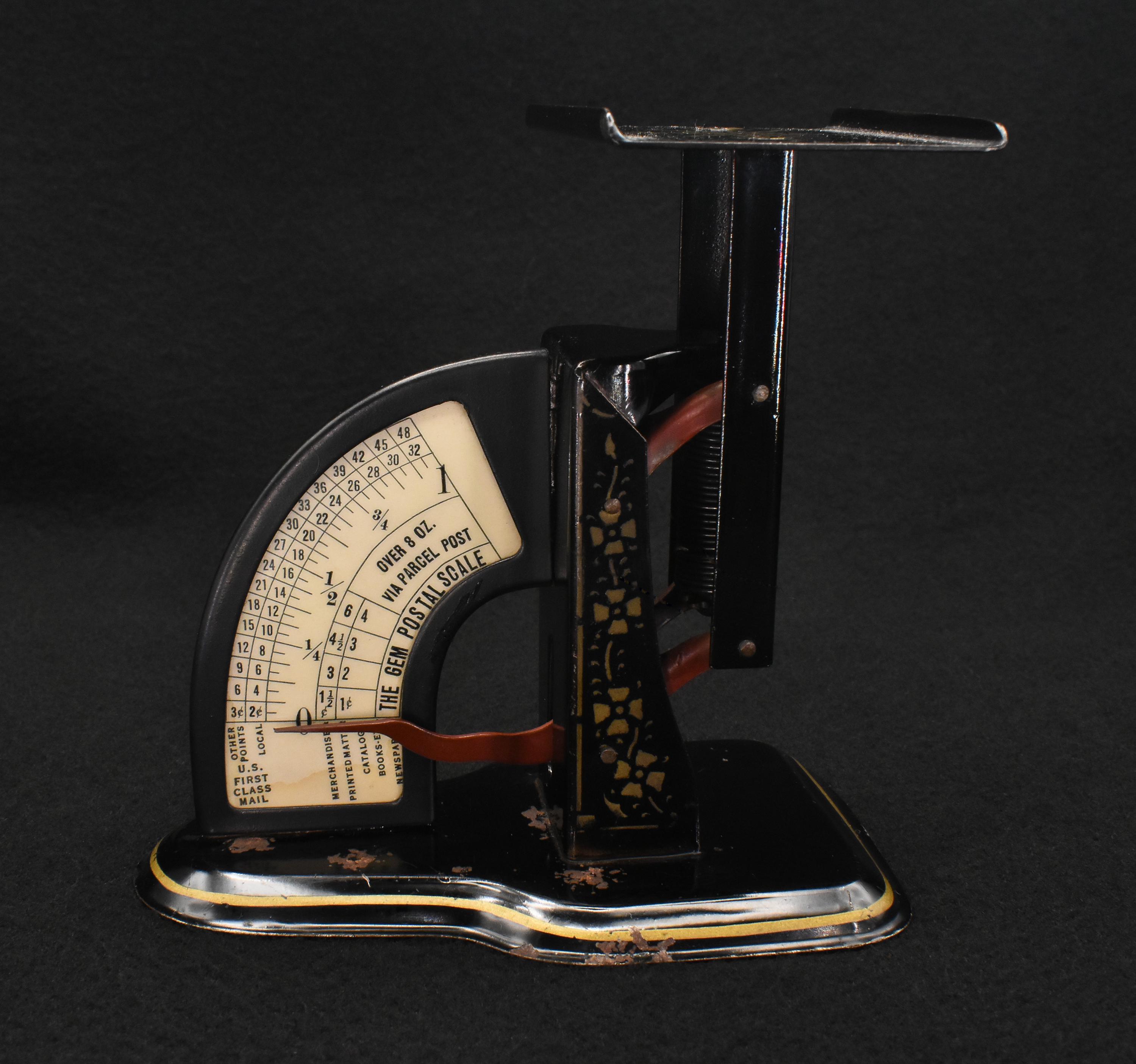 This Gem postal scale is a wonderfully-kept example of an early piece of business supply we don't really think about. But in a burgeoning world of industrial development and catalog-ordered commerce, this was no insignificant piece of kit...