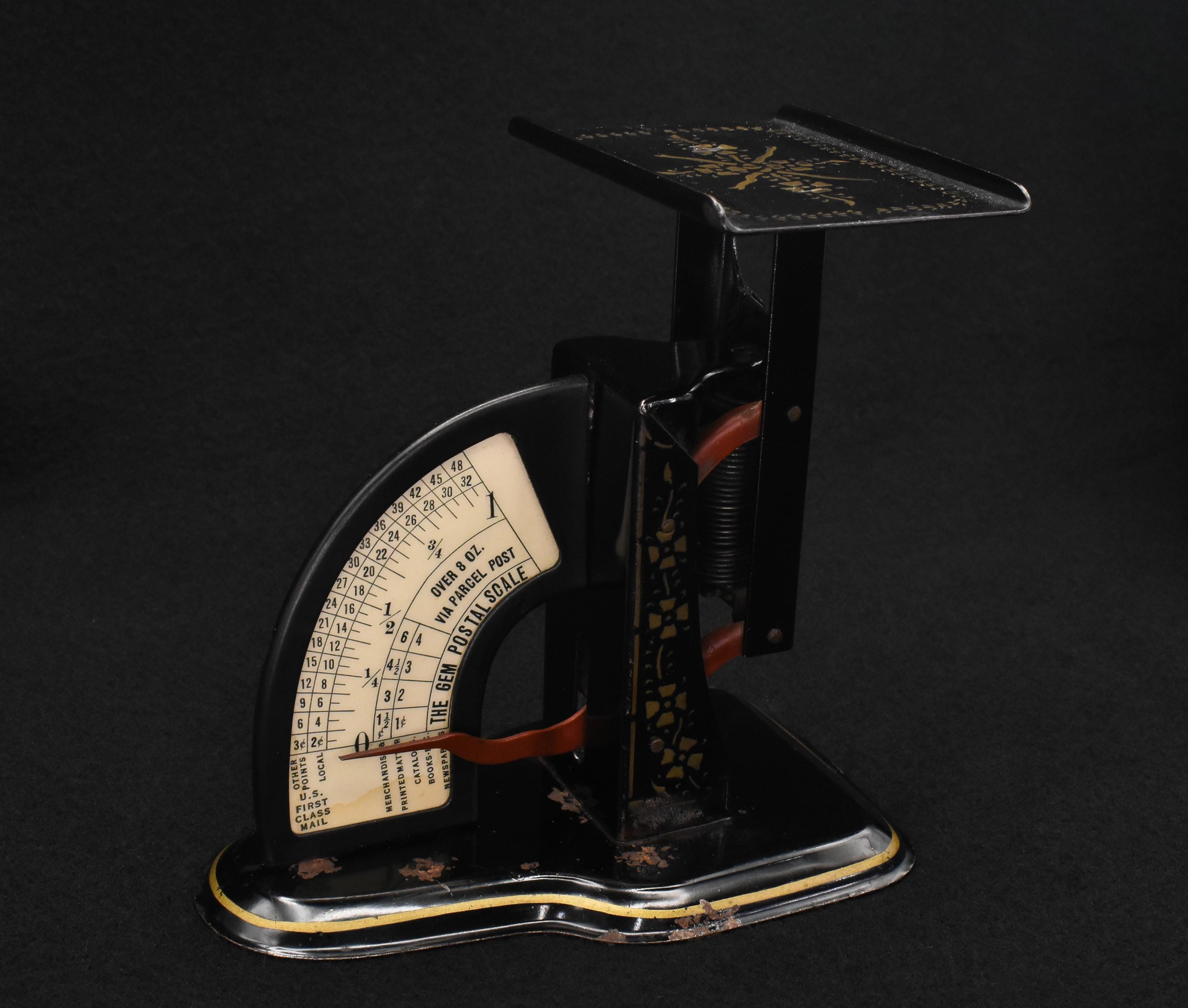The turn of the 20th century was one of unbridled industrial growth. New designs were merging with now-perfected manufacturing techniques to provide beautifully simple tools for the modern consumer and retailer. Tin and pressed steel gave us products ranging from colourful children's toys to automobile components to simple instruments designed to simplify every day functions - in this case, sending a letter or parcel. Prior to these postal scales, the cumbersome trip to the post office, lugging all your merchandise or correspondence, would not only necessitate labour but valuable time, as well. But by the mid-1800s, postal rates had made a very important change, from pages/distance to weight/distance. Instead of cumbersome and time-consuming equal-arm balances with loose weights, spring weights became the go-to method of weighing postal packages. In turn, postal services were constantly evolving to meet increasing demand.