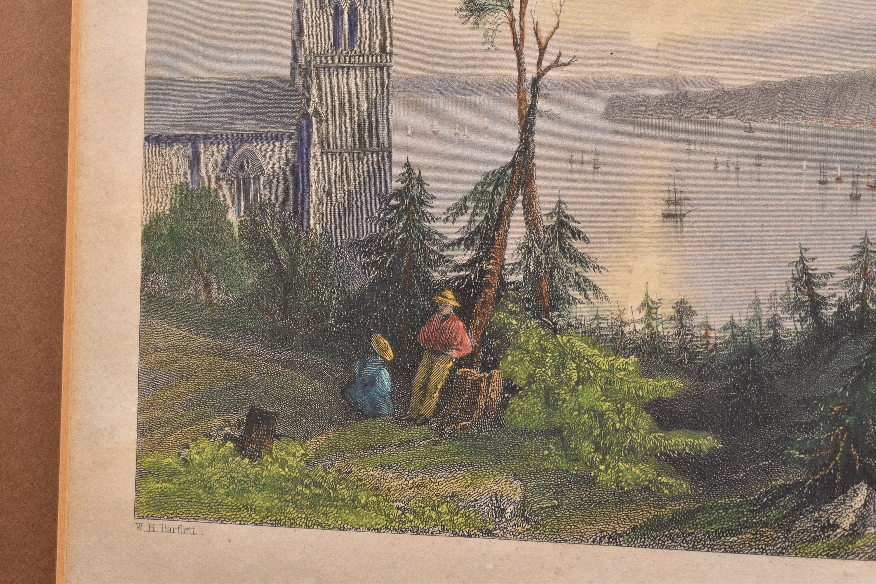 Born in 1809, Bartlett quickly found his love for drawing. He was apprenticed to John Britton, an architect and antiquarian, and became one of the foremost illustrators of topography of his generation. His love of drawing coupled with his master's love of history made him a perfect candidate to illustrate the history of the world, prior to photographic technology. He took several trips to Canada and the Americas to illustrate the landscape, buildings and people. In 1835, Bartlett first visited the United States to draw the buildings, towns and scenery of the northeastern states. The finely detailed steel engravings Bartlett produced were published, uncolored, with a text by Nathaniel Parker Willis as: "American Scenery; or Land, Lake, and River: Illustrations of Transatlantic Nature." "American Scenery" was published by George Virtue in London and solidified Bartlett's reputation as one of the most skilled artists of the time. Bartletts primary concern was to render "lively impressions of actual sights", as he wrote in the preface to The Nile Boat (London, 1849). Many views contain some ruin or element of the past including many scenes of churches, abbeys, cathedrals and castles, and Nathaniel Parker Willis described Bartlett's talent thus: "Bartlett could select his point of view so as to bring prominently into his sketch the castle or the cathedral, which history or antiquity had allowed".