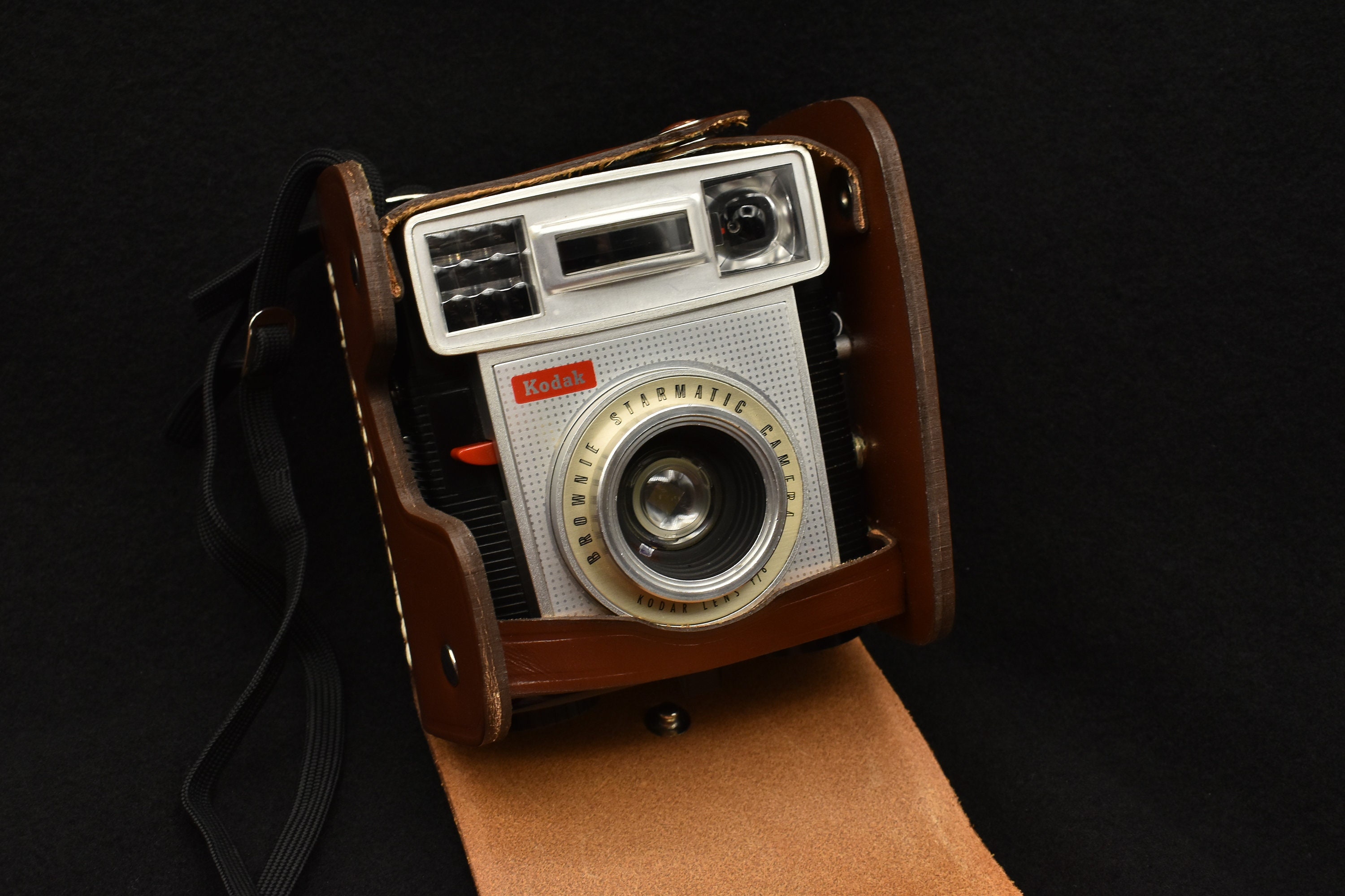George Eastman and Kodak have been synonymous with photography since before the turn of the 20th century. Kodak's cameras showed the world the first images of far-off wonders, made relatives green with envy over trips to foreign lands, and showed humanity its first images of the atrocities of war. They were almost solely responsible for the emergence of photography for the masses. They were responsible for the word 'snapshot,' and by 1905 a full one-third of Americans owned a Kodak Brownie camera. Kodak's fortunes lay not with the revolutionary cameras they sold, however. The genius of George Eastman was his realization that photography's market lay not with the apparatus, but the media. The company's successes have famously relied on their evolution and development of film standards, not camera technology. Many of their early cameras weren't even theirs. The Eastman Kodak Company bought up several existing camera manufacturers to bolster their credentials and abilities, as well as to ensure their supremacy in the amateur photography market. However, by the late 50s, there were several up-and-coming manufacturers that were producing admirable cameras. Nikon and Minolta were to be developed into impressive photographic manufacturers within the next decade, and FujiFilm, a company started in the 30s on the same premise as Kodak - to provide photographic film to an ever-growing industry - was just entering the middle-consumer camera market. Although Kodak had their fair bit of competition with regards to equipment, they held a great deal of the world market when it came to camera film. By the 50s, 35mm film was prevalent in the industry, with Kodak owning the lion's share of the North American, British and even European markets. Kodak played with various shapes, sizes, films and iterations of the Brownie camera, adding features and shrinking the overall size of the unit. Then, in 1959, the Automatic 35 was introduced. This was Kodak's first automatic, fixed-lens, viewfinder camera. It had a built-in light meter which automatically sets the ISO value, 2 shutter speeds (1/40 and 1/80) and a manual exposure mode. It was immensely successful among a burgeoning amateur photography market. Introducing the lay-photographer to new elements of photography allowed for much higher quality photos. Around this time, we can see photographs slowly wending their way into catalogues and professional publications due to the ever-evolving and emerging photographic technologies of the time. Once these technologies were introduced, it was only a matter of time before these features were added to the exceedingly-popular Brownie range of cameras. Kodak was way ahead of the game, as usual, and anticipated the fervor among their photographic faithful. That same year, they introduced the first Brownie with both an exposure meter and automatic exposure - the Starmatic. It was made mostly of plastic, but important, structural components were still steel (internal housing and film winder). It used 127 roll film (which was and remained so popular that it is still available today!) and took 4cm x 4cm photos. The Starmatic was unusual in the Brownie family in that it offered modern conveniences such as a light meter, AE, and a triplet lens (as opposed to the usual meniscus lenses found in prior Brownies), but it was also significantly more expensive than its predecessors, retailing at $34.50 when most Brownie cameras were priced well below the $15 mark. Regardless of the price, it was a runaway hit. However, it was not around for too long... In 1958, there were almost no cameras with automatic exposure (save for one or two hugely expensive professional cameras), but a mere 2 years later, there were already 15! It's not that the Starmatic wasn't excellent - it was truly a great camera - it was the speed of technological advancement of the time that rendered the Starmatic obsolete in a matter of only 3 years.